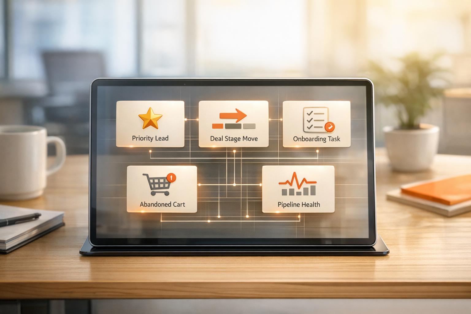 Automate HubSpot alerts for priority leads, deal stage moves, onboarding actions, abandoned carts, and pipeline health to speed response.